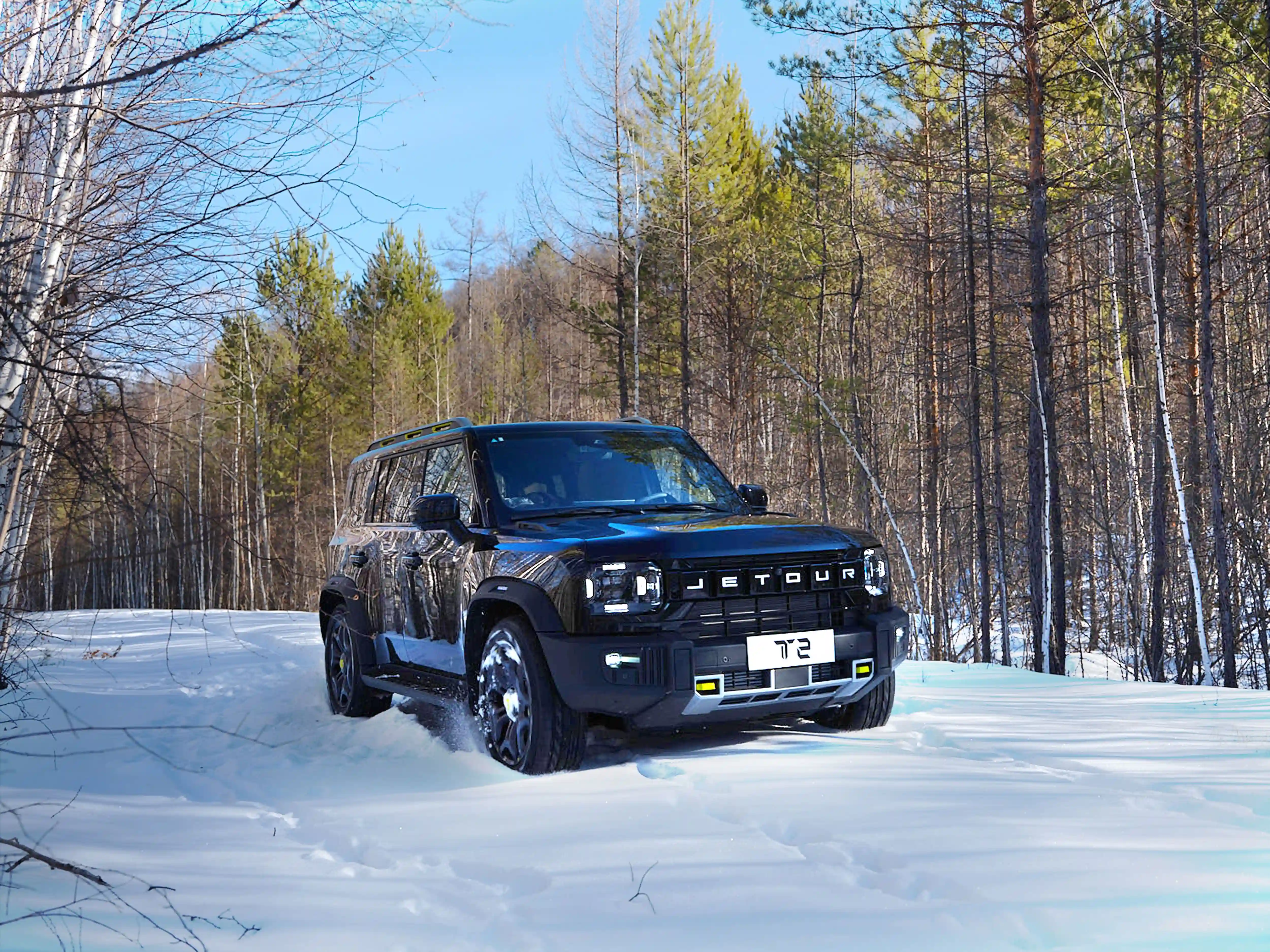 Представленный на российском рынке в 2024 году Jetour T2 стал первой моделью внедорожной линейки «T» бренда Jetour в России. В базовой комплектации автомобиль оснащается системой полного привода и двигателем 245 л.с. в сочетании с роботизированной семиступенчатой коробкой передач. Jetour T2 отличается впечатляющими параметрами геометрической проходимости: минимальный дорожный просвет 220 мм, углы въезда и съезда 28 градусов, максимальная глубина преодолеваемого брода 700 мм. Система полного привода XWD от BorgWarner в режиме Auto самостоятельно распределяет крутящий момент между передней и задней осями, при необходимости активируя блокировки дифференциалов.